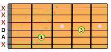 These power chords are usually played by fretting one note with one finger and strumming two strings. They can be played with two fingers but I don’t recommend that; one version of the D5 chord is an exception to this rule as you’ll see in the next groups.