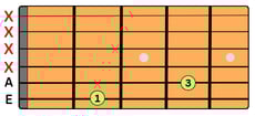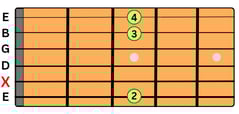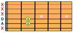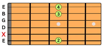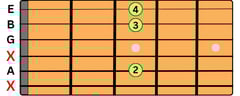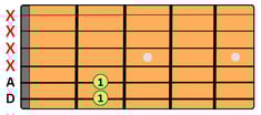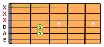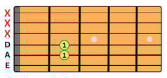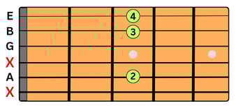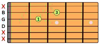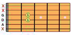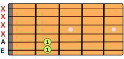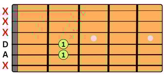 There are quite a few ways to play these; they’re all the same chord but the more notes that are added, the bigger and fuller the sound. If you’re a total beginner, stick to the two string voicing.