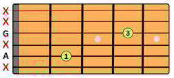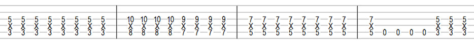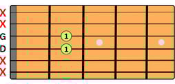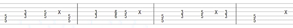 The G5 and C5 are played similarly to a G major and Cadd9 chord, the only difference is the string below the middle finger is muted by the underside of that finger.