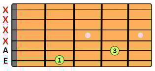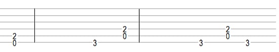 These are often much more tricky for beginners because on the guitar you have to play two separate strings without sounding a string that’s in between them (whilst muting the string in between). You also have to be careful that you don’t press the string down with your index finger so it can’t be heard.